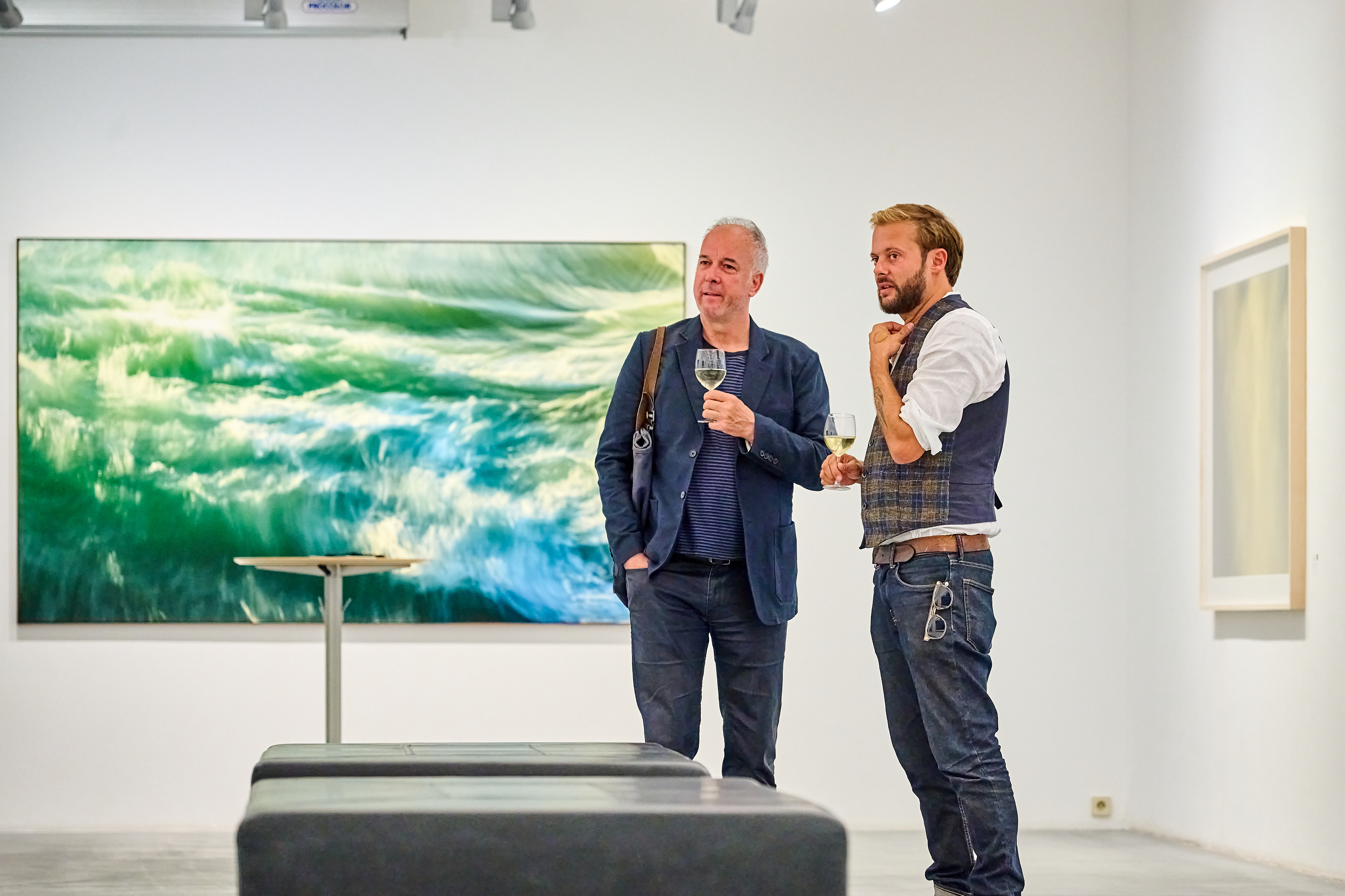 Thus the artist, who was born in Italy and today commutes between Vienna and Portugal, has also turned his love of the sea into an extraordinary series of photographs. For his "Ode to the Sea," shown for the first time at OstLicht, he spent many hours in the whipped-up water to capture the dynamics and superhuman power of the waves with his camera.